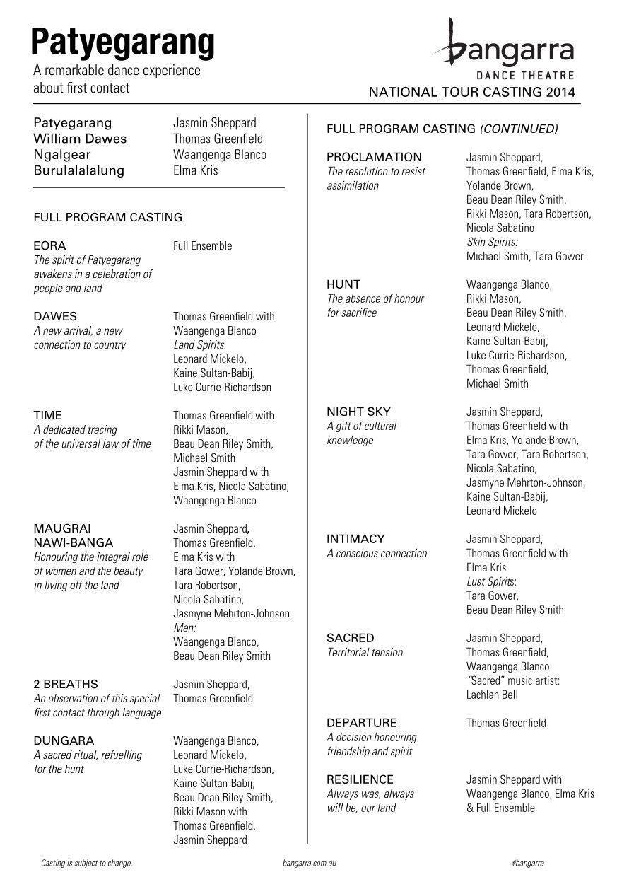 To protect and respect the wealth of culture and knowledge shared with Bangarra by our Aboriginal and Torres Strait Islander contributors and their communities, and Bangarra’s rights in its own content, you acknowledge and agree that: